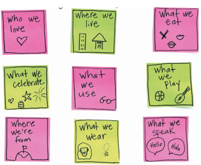 An identity web or heart map allows students to introduce themselves by sharing all the things they want others to know about them. Encourage students to include all parts of their identity — both visible and invisible.
