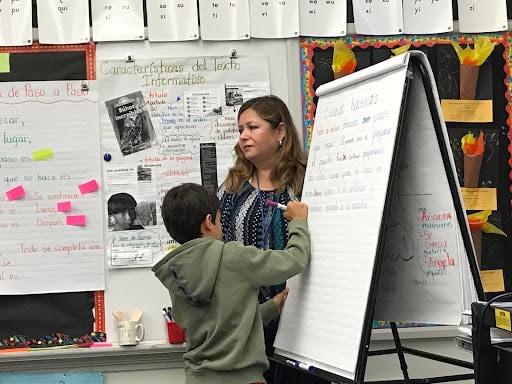Call on kids who are more advanced in sophisticated topics. For example, if I were teaching Kindergarten but had a child who was an advanced reader, I might call them up to spell or write some of the longer, more complex words.You may also call on beginning writers to come up and do the simpler work or the work that’s review for the rest of the class. For example, If I were a first grade teacher who had a student stringing letters together and not yet putting spaces between words, I might call that child up to hold a space between each word. In doing this, I’d be helping them to practice that skill which will hopefully help them when they’re working independently.