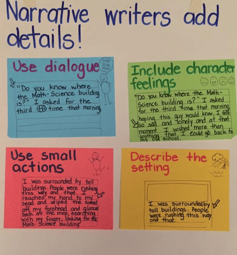 2. Include examples from mentor texts: You can include examples from mentor texts that have already been introduced and read to your class. These examples can be photocopied and placed directly on the chart.