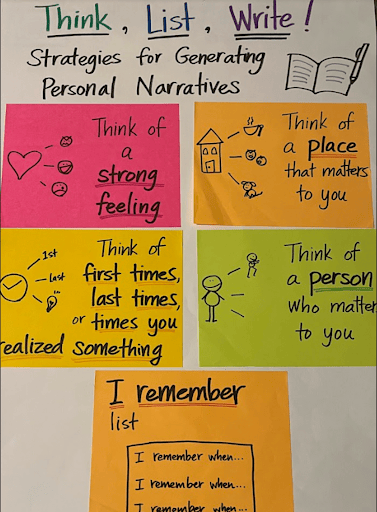 students can choose from when generating ideas for a personal narrative.